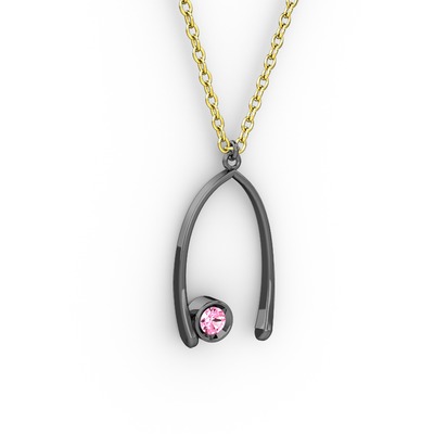 Pembe kuvars 925 ayar siyah rodyum kaplama gümüş kolye (40 cm altın rolo zincir)