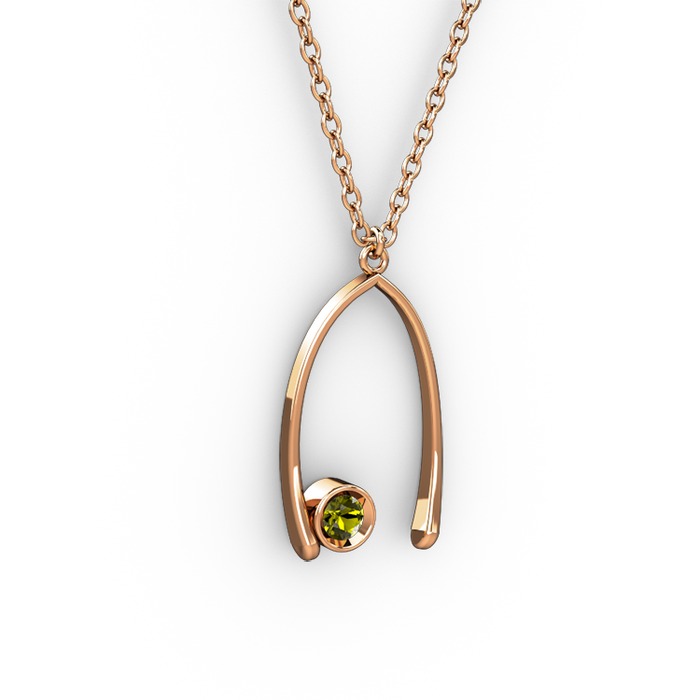 Peridot 8 ayar rose altın kolye (40 cm rose altın rolo zincir)