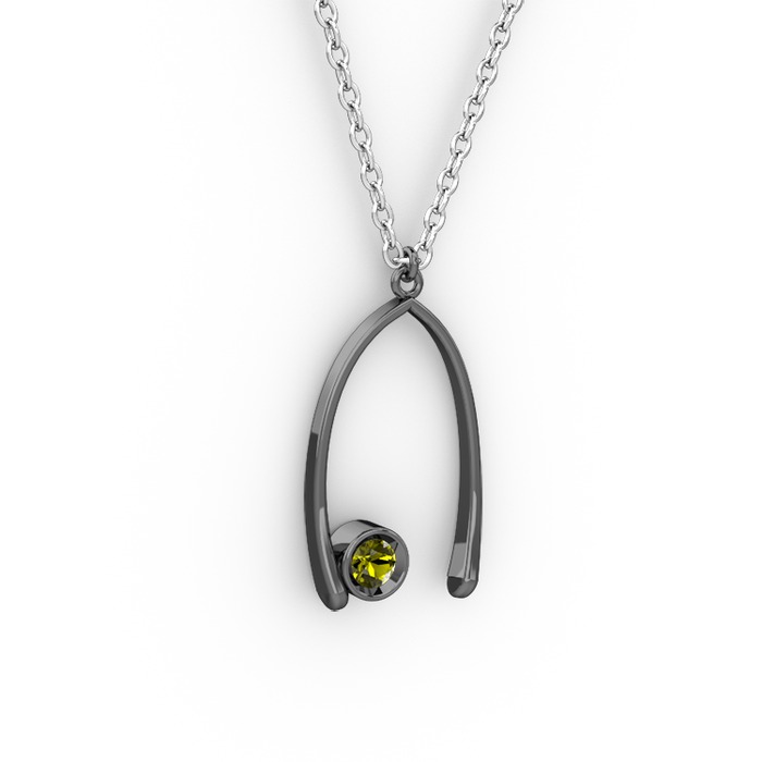 Peridot 925 ayar siyah rodyum kaplama gümüş kolye (40 cm beyaz altın rolo zincir)