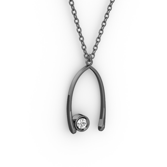 Pırlanta 925 ayar siyah rodyum kaplama gümüş kolye (0.036 karat, 40 cm gümüş rolo zincir)