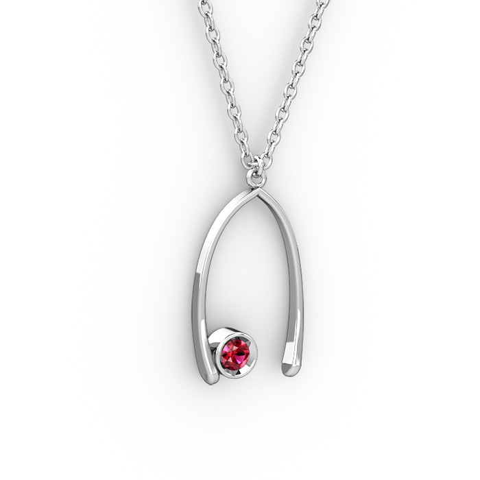 Rodolit garnet 18 ayar beyaz altın kolye (40 cm gümüş rolo zincir)