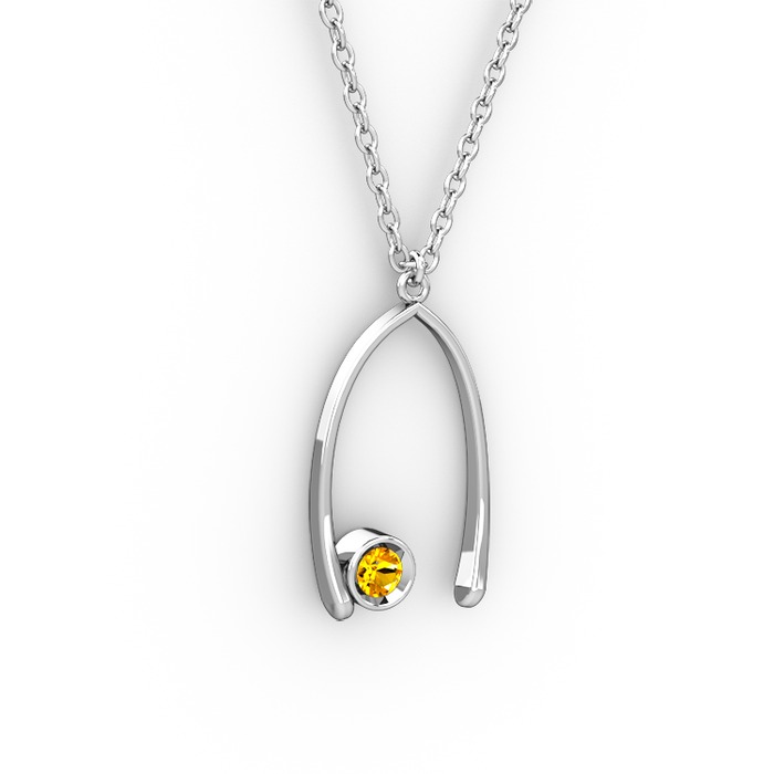 Sitrin 8 ayar beyaz altın kolye (40 cm gümüş rolo zincir)
