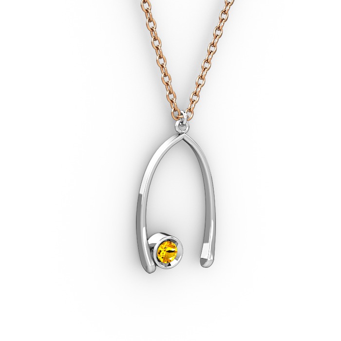 Sitrin 925 ayar gümüş kolye (40 cm rose altın rolo zincir)