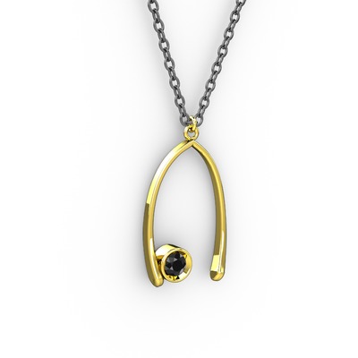 Siyah zirkon 14 ayar altın kolye (40 cm gümüş rolo zincir)