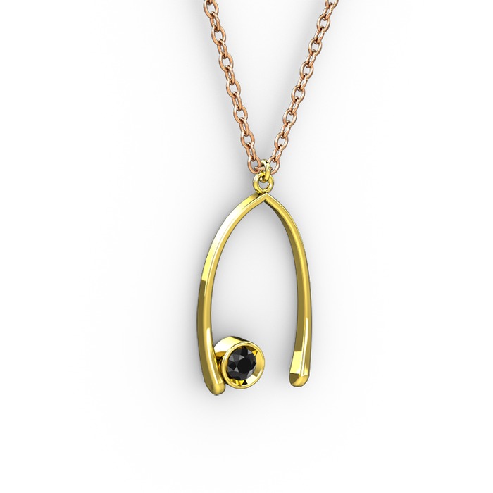 Siyah zirkon 18 ayar altın kolye (40 cm rose altın rolo zincir)