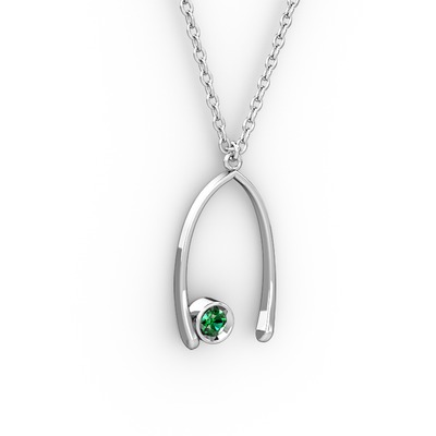 Yeşil kuvars 18 ayar beyaz altın kolye (40 cm gümüş rolo zincir)