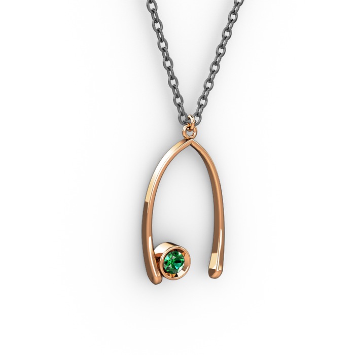 Yeşil kuvars 18 ayar rose altın kolye (40 cm gümüş rolo zincir)