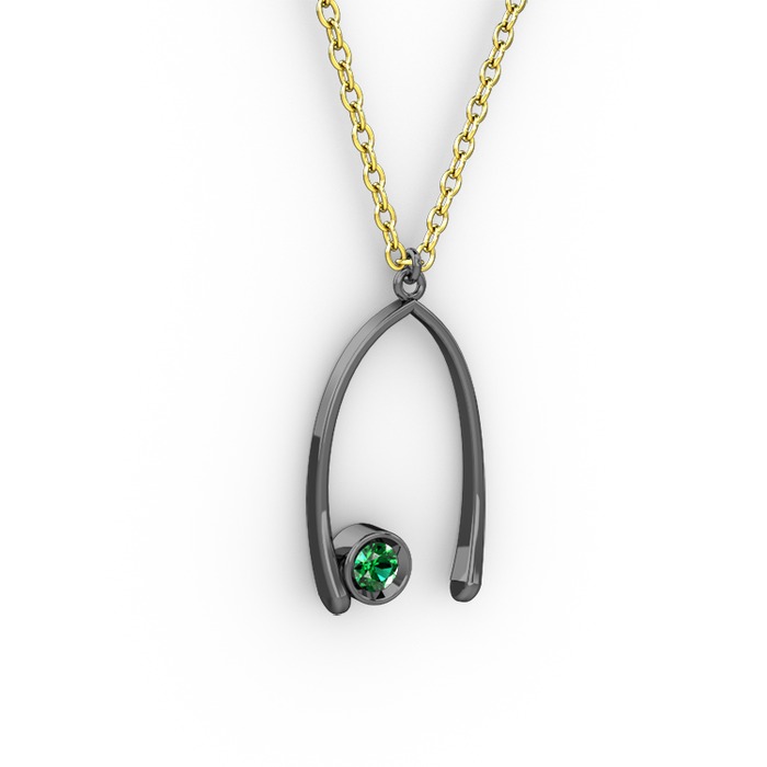 Yeşil kuvars 925 ayar siyah rodyum kaplama gümüş kolye (40 cm altın rolo zincir)