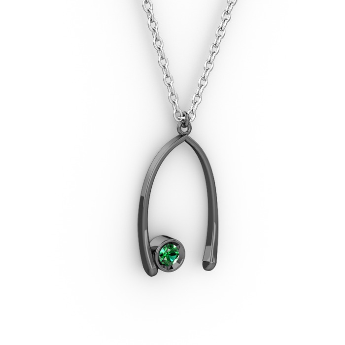 Yeşil kuvars 925 ayar siyah rodyum kaplama gümüş kolye (40 cm gümüş rolo zincir)