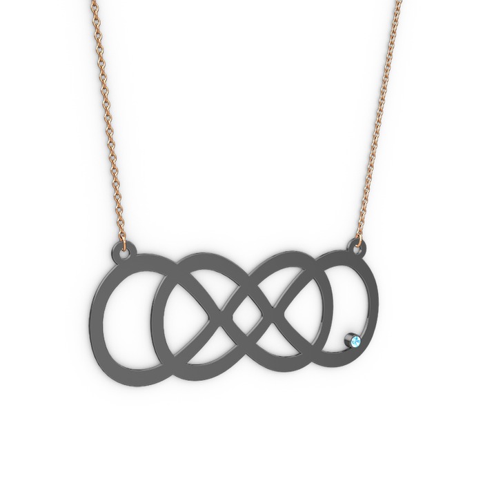 Akuamarin 925 ayar siyah rodyum kaplama gümüş kolye (40 cm rose altın rolo zincir)