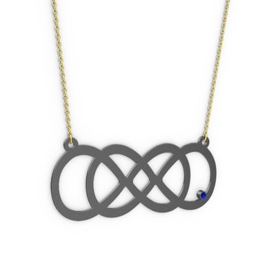 Lab safir 925 ayar siyah rodyum kaplama gümüş kolye (40 cm altın rolo zincir)