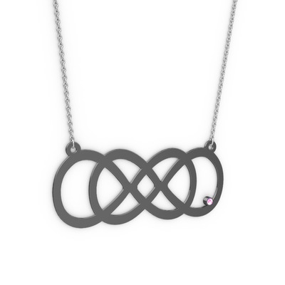 Pembe kuvars 925 ayar siyah rodyum kaplama gümüş kolye (40 cm beyaz altın rolo zincir)