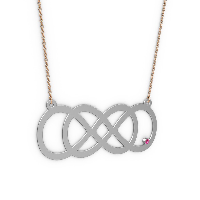 Rodolit garnet 18 ayar beyaz altın kolye (40 cm rose altın rolo zincir)