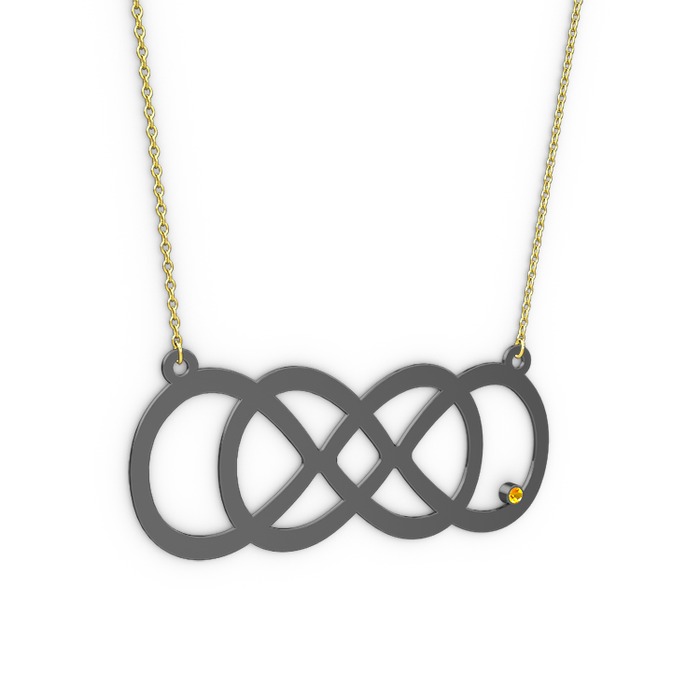 Sitrin 925 ayar siyah rodyum kaplama gümüş kolye (40 cm altın rolo zincir)