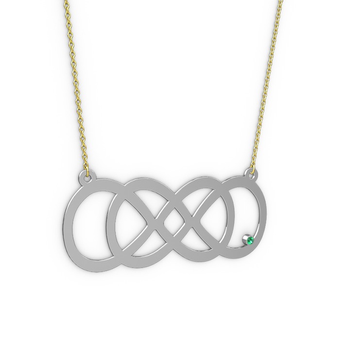 Yeşil kuvars 14 ayar beyaz altın kolye (40 cm gümüş rolo zincir)