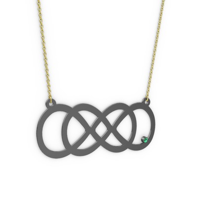 Yeşil kuvars 925 ayar siyah rodyum kaplama gümüş kolye (40 cm altın rolo zincir)