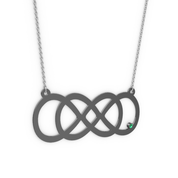 Yeşil kuvars 925 ayar siyah rodyum kaplama gümüş kolye (40 cm beyaz altın rolo zincir)