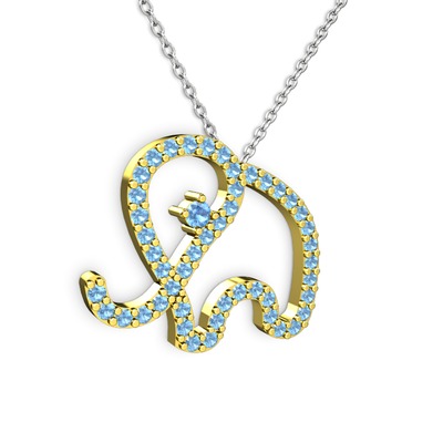 Akuamarin 14 ayar altın kolye (40 cm gümüş rolo zincir)