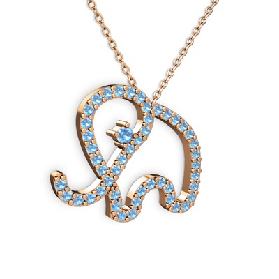Akuamarin 8 ayar rose altın kolye (40 cm rose altın rolo zincir)