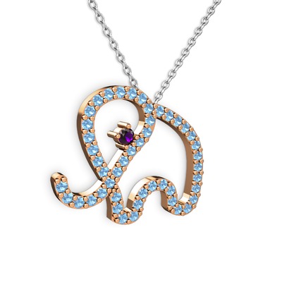 Akuamarin ve ametist 18 ayar rose altın kolye (40 cm beyaz altın rolo zincir)