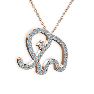 Akuamarin ve beyaz zirkon 18 ayar rose altın kolye (40 cm rose altın rolo zincir)