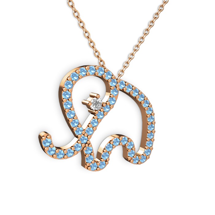 Akuamarin ve beyaz zirkon 925 ayar rose altın kaplama gümüş kolye (40 cm gümüş rolo zincir)