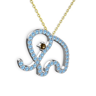 Akuamarin ve dumanlı kuvars 14 ayar beyaz altın kolye (40 cm gümüş rolo zincir)
