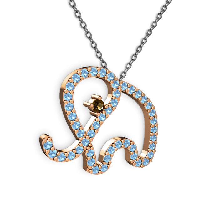 Akuamarin ve dumanlı kuvars 8 ayar rose altın kolye (40 cm gümüş rolo zincir)