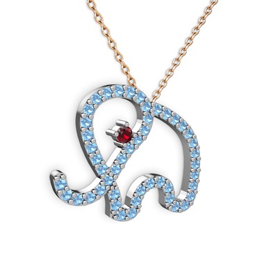 Akuamarin ve garnet 8 ayar beyaz altın kolye (40 cm rose altın rolo zincir)