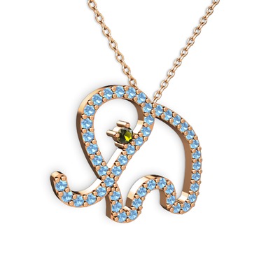 Akuamarin ve peridot 925 ayar rose altın kaplama gümüş kolye (40 cm rose altın rolo zincir)