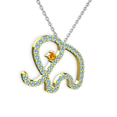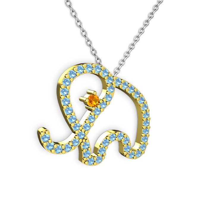 Akuamarin ve sitrin 14 ayar altın kolye (40 cm beyaz altın rolo zincir)