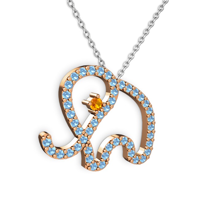Akuamarin ve sitrin 8 ayar rose altın kolye (40 cm beyaz altın rolo zincir)