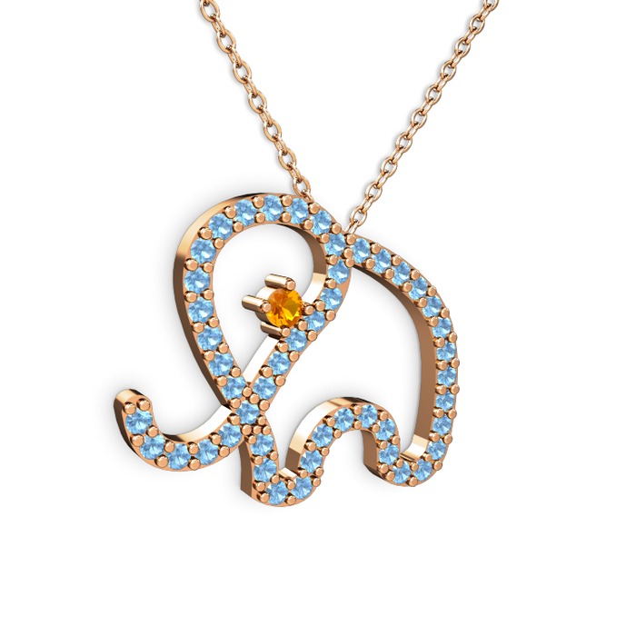 Akuamarin ve sitrin 925 ayar rose altın kaplama gümüş kolye (40 cm rose altın rolo zincir)