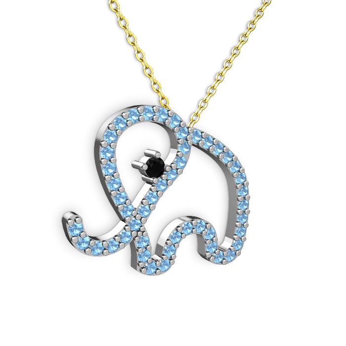 Akuamarin ve siyah zirkon 925 ayar gümüş kolye (40 cm altın rolo zincir)