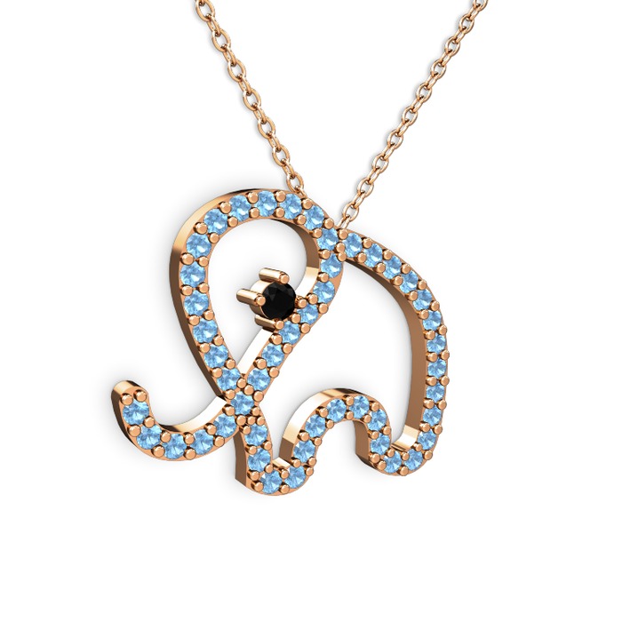 Akuamarin ve siyah zirkon 925 ayar rose altın kaplama gümüş kolye (40 cm rose altın rolo zincir)