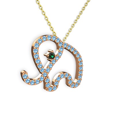Akuamarin ve yeşil kuvars 14 ayar rose altın kolye (40 cm altın rolo zincir)