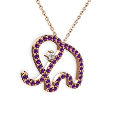 Ametist ve beyaz zirkon 18 ayar rose altın kolye (40 cm rose altın rolo zincir)