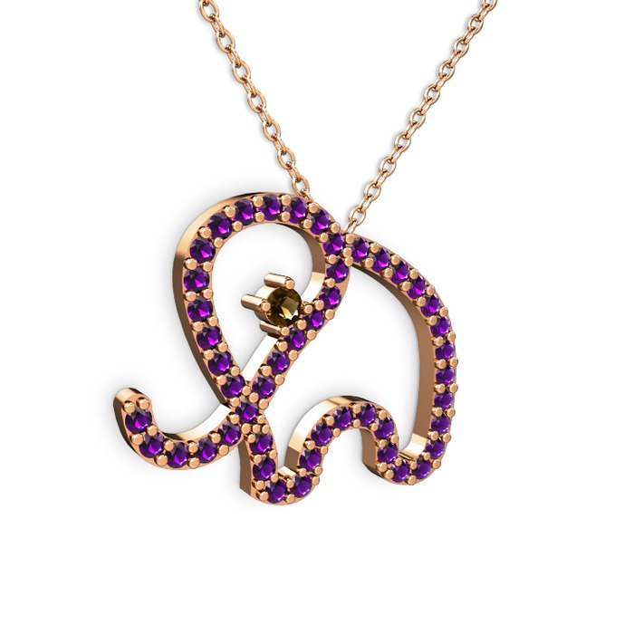 Ametist ve dumanlı kuvars 14 ayar rose altın kolye (40 cm rose altın rolo zincir)