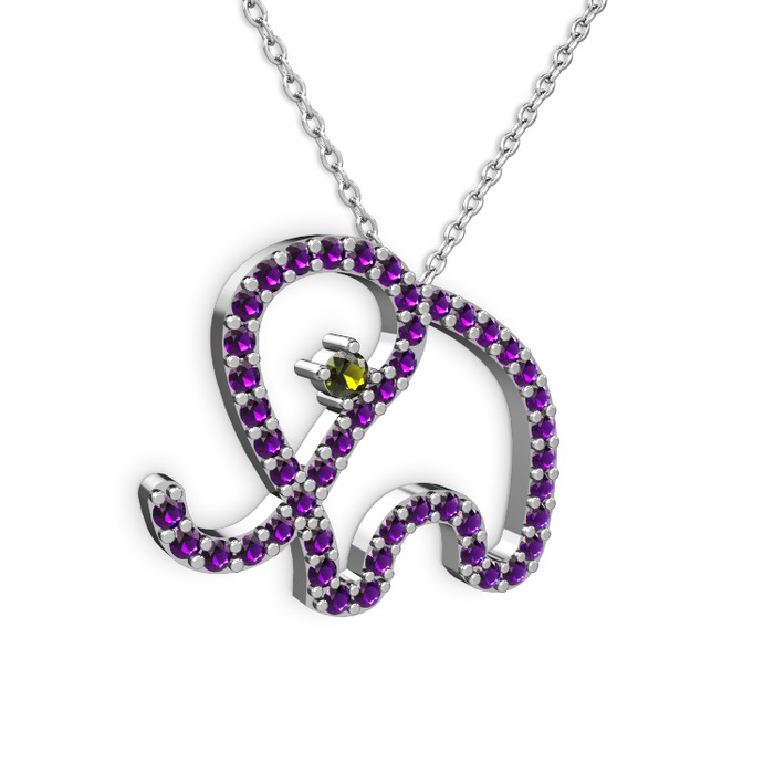 Ametist ve peridot 18 ayar beyaz altın kolye (40 cm beyaz altın rolo zincir)