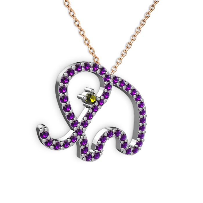 Ametist ve peridot 18 ayar beyaz altın kolye (40 cm rose altın rolo zincir)