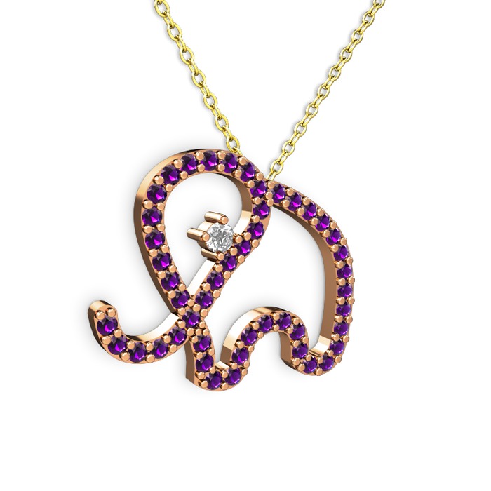 Ametist ve pırlanta 14 ayar rose altın kolye (0.517 karat, 40 cm altın rolo zincir)