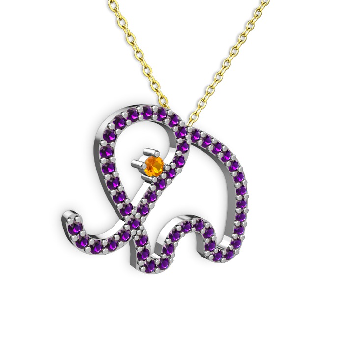 Ametist ve sitrin 14 ayar beyaz altın kolye (40 cm altın rolo zincir)