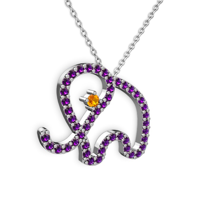 Ametist ve sitrin 925 ayar gümüş kolye (40 cm gümüş rolo zincir)