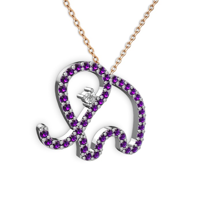 Ametist ve swarovski 925 ayar gümüş kolye (40 cm rose altın rolo zincir)