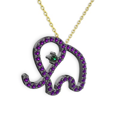 Ametist ve yeşil kuvars 925 ayar siyah rodyum kaplama gümüş kolye (40 cm altın rolo zincir)