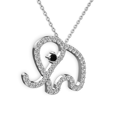 Beyaz zirkon ve siyah zirkon 14 ayar beyaz altın kolye (40 cm beyaz altın rolo zincir)