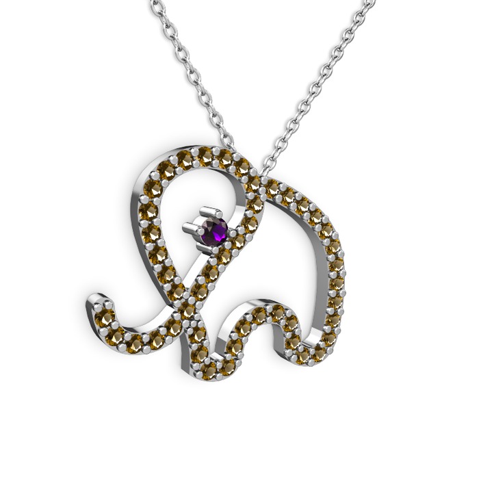 Dumanlı kuvars ve ametist 8 ayar beyaz altın kolye (40 cm gümüş rolo zincir)