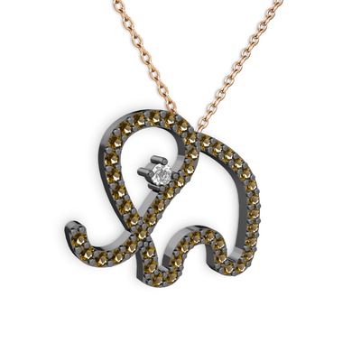 Dumanlı kuvars ve pırlanta 925 ayar siyah rodyum kaplama gümüş kolye (0.517 karat, 40 cm rose altın rolo zincir)