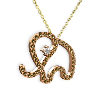 Dumanlı kuvars ve swarovski 14 ayar rose altın kolye (40 cm altın rolo zincir)