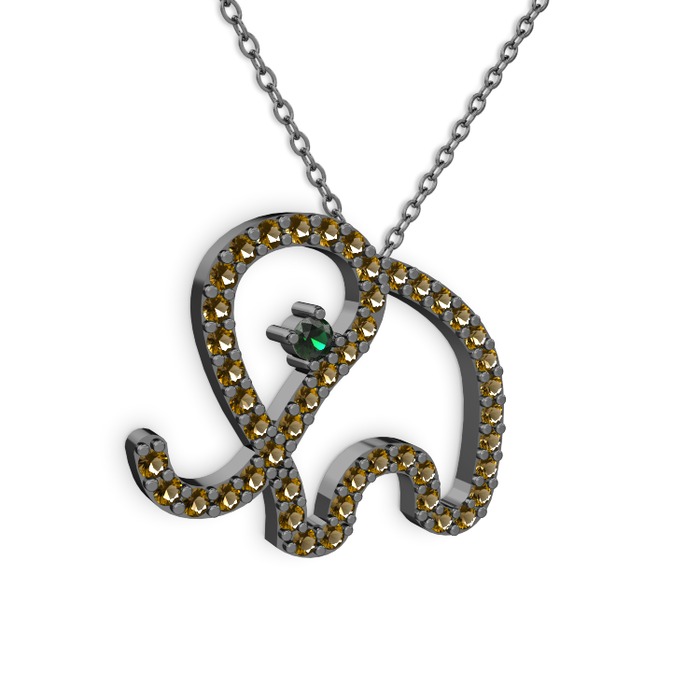 Dumanlı kuvars ve yeşil kuvars 925 ayar siyah rodyum kaplama gümüş kolye (40 cm gümüş rolo zincir)